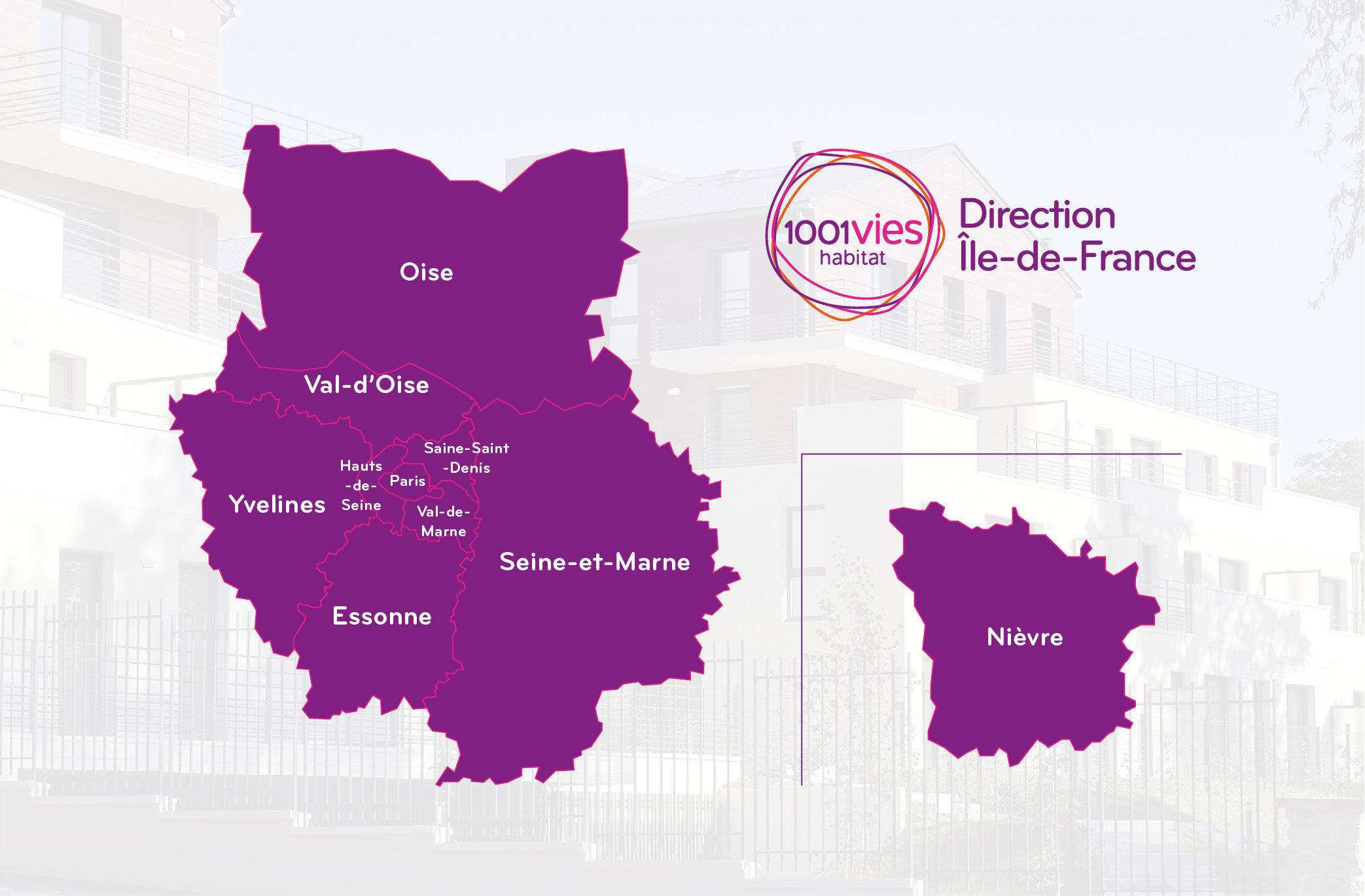 Découvrez l’implantation de 1001 Vies Habitat en Île-de-France, Nièvre ou Oise cliquez ici.
